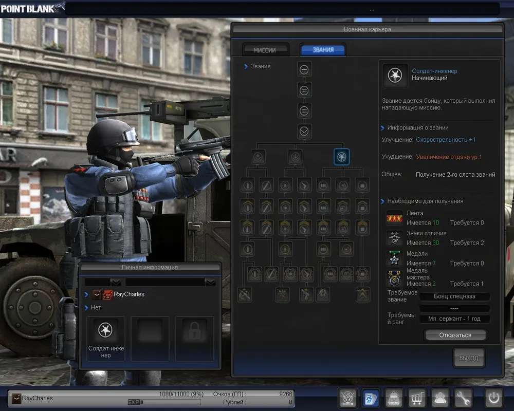 опыт. В игре введены звания, игроку можно выбирать умения, менять